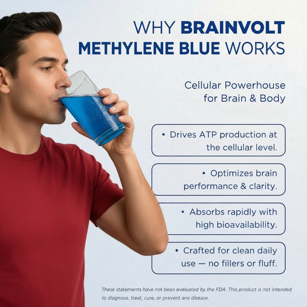 Built on real science—not hype—BrainVolt centers around methylene blue, a highly studied compound known for supporting cellular energy where focus and mental endurance begin.